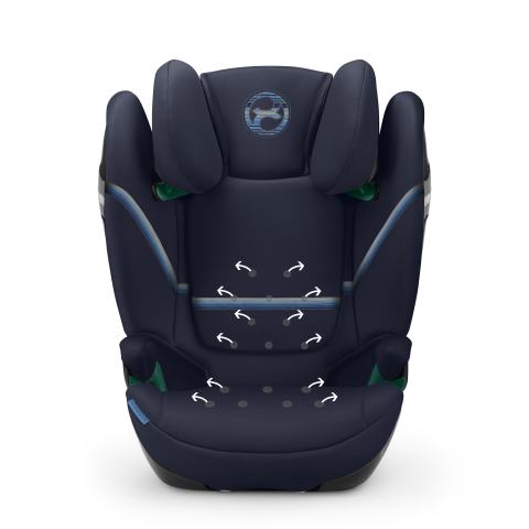 Zintegrowany System Wentylacji siedziska zapewnia przepływ powietrza w foteliku. Zapobiega to przegrzaniu i gwarantuje komfortową temperaturę w upalne dni.