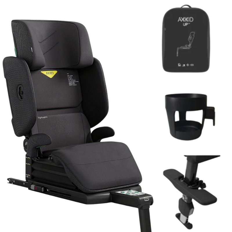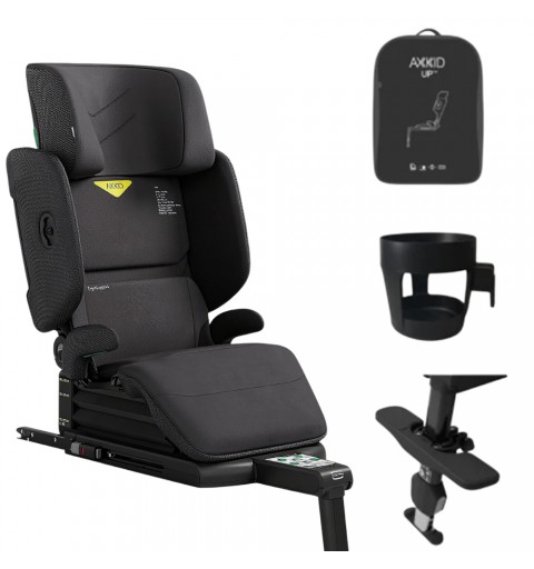 Jedyny na świecie fotelik ostatni z wysokim oparciem i opatentowanym podnoszonym siedziskiem. Podnosi bezpieczeństwo i umożliwia korzystanie z systemów bezpieczeństwa w samochodzie, takich jak boczne poduszki powietrzne, napinacze i optymalne prowadzi pasy bez luzowania. Axkid Up otrzymał wiele nagród i na nowo definiuje bezpieczeństwo fotelików samochodowych skierowanych przodem do kierunku jazdy. Dzięki ProTecBase™ Axkid Up zmniejsza siły zderzenia nawet o 25%* i został przetestowany do 50 kg.