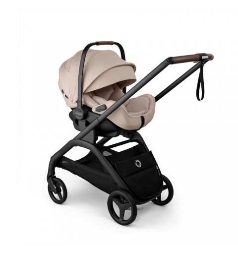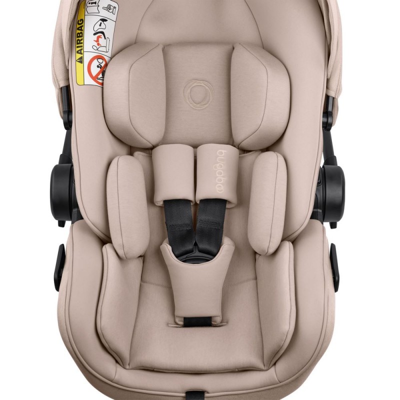 w samochodzie tyłem do kierunku jazdy przy użyciu bazy isofix Bugaboo (baza do dokupienia osobno) lub za pomocą pasów bezpieczeństwa pojazdu. Fotelik posiada 3 poziomy regulacji położenia siedziska aż do pozycji leżącej: 157°. Wszystkie tryby ułożenia siedziska można wykorzystać podczas jazdy samochodem (fotelik zamontowany na bazie isofix) lub podczas spaceru (fotelik zamontowany na stelażu wózka).