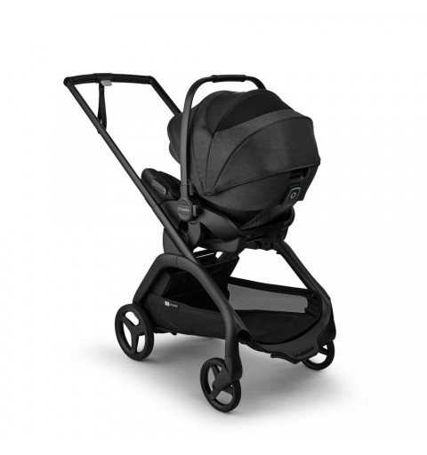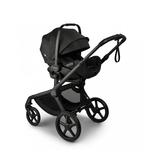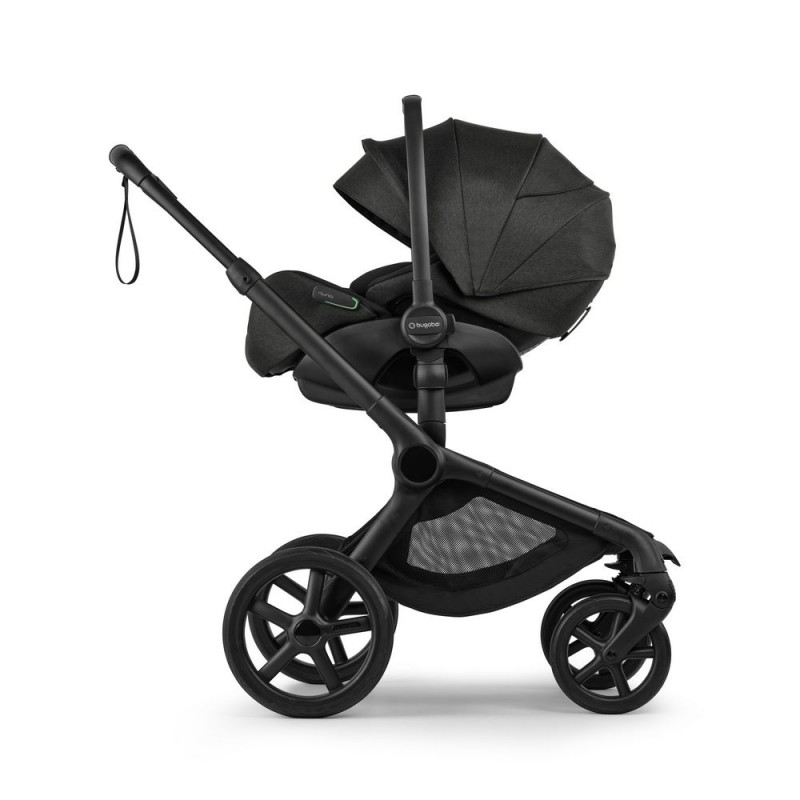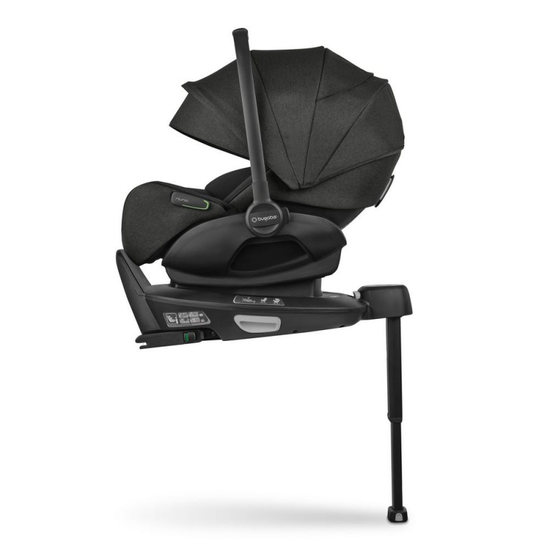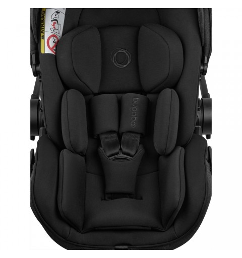w samochodzie tyłem do kierunku jazdy przy użyciu bazy isofix Bugaboo (baza do dokupienia osobno) lub za pomocą pasów bezpieczeństwa pojazdu. Fotelik posiada 3 poziomy regulacji położenia siedziska aż do pozycji leżącej: 157°. Wszystkie tryby ułożenia siedziska można wykorzystać podczas jazdy samochodem (fotelik zamontowany na bazie isofix) lub podczas spaceru (fotelik zamontowany na stelażu wózka).