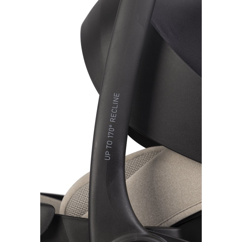 OBROTOWA BAZA ISOFIX – dzięki obrotowej bazie ISOFIX szybko i wygodnie posadzisz dziecko w foteliku. Baza umożliwia ustawienie fotelika bokiem na czas usadzania dziecka oraz na czas postoju (na przykład podczas karmienia dziecka, gdy rodzic siedzi obok). Dużą zaletą jest możliwość wpięcia fotelika w bazę również w ustawieniu bokiem.