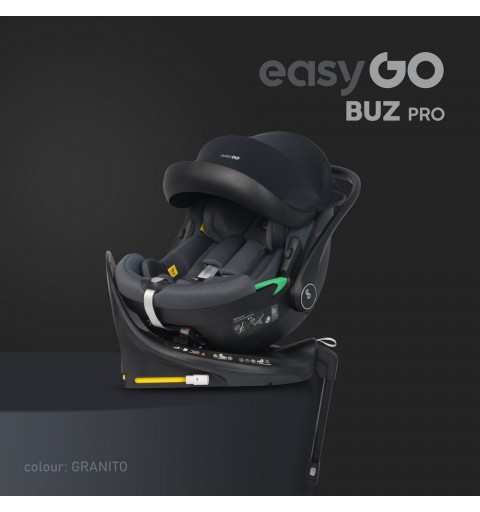 Fotelik samochodowy EasyGo BUZ PRO z obrotową bazą ISOFIX dla dzieci od 40 do 87 cm (0-13kg) ECE R129 I-SIZE