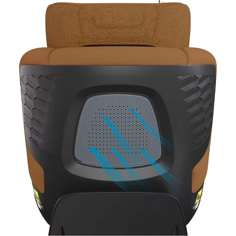 W foteliku zastosowano ulepszone i większe panele wentylacyjne ClimaFlow oraz oddychającą piankę, aby poprawić cyrkulację powietrza i zapewnić dziecku właściwą temperaturę.