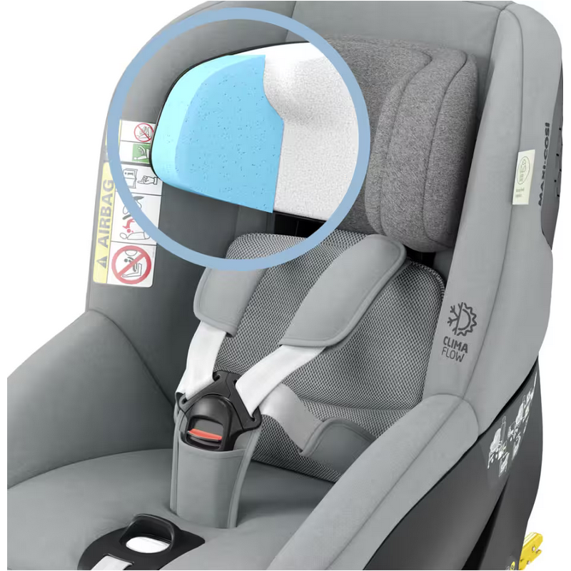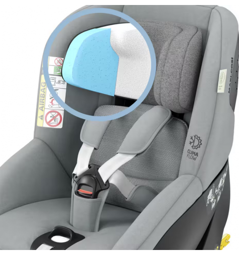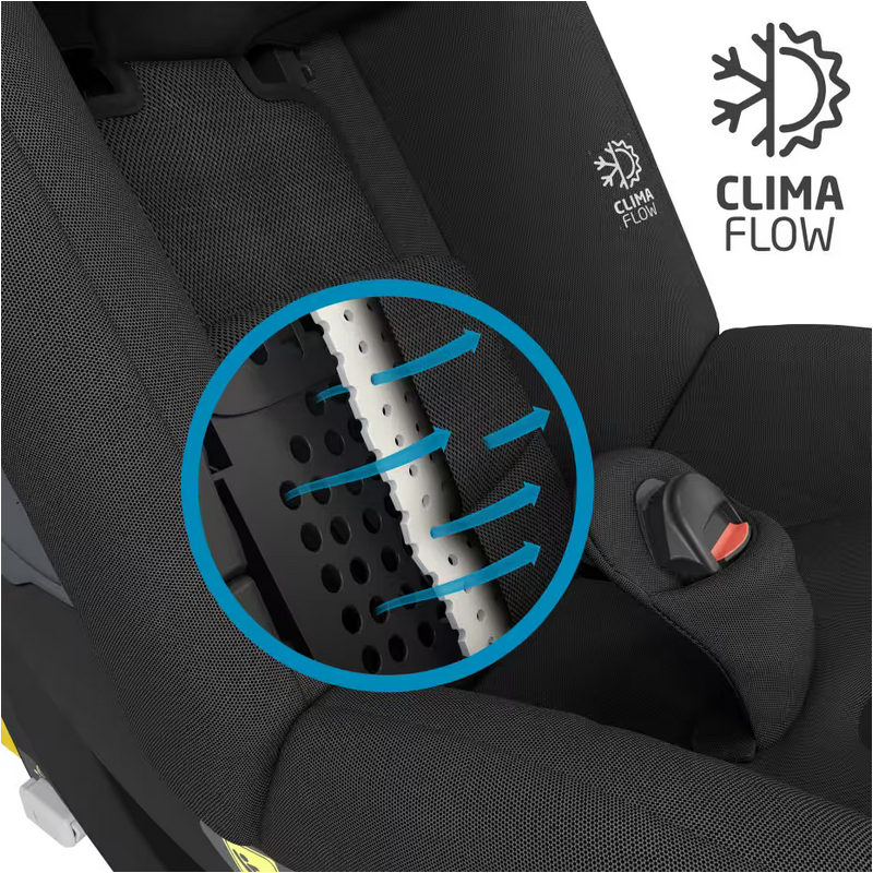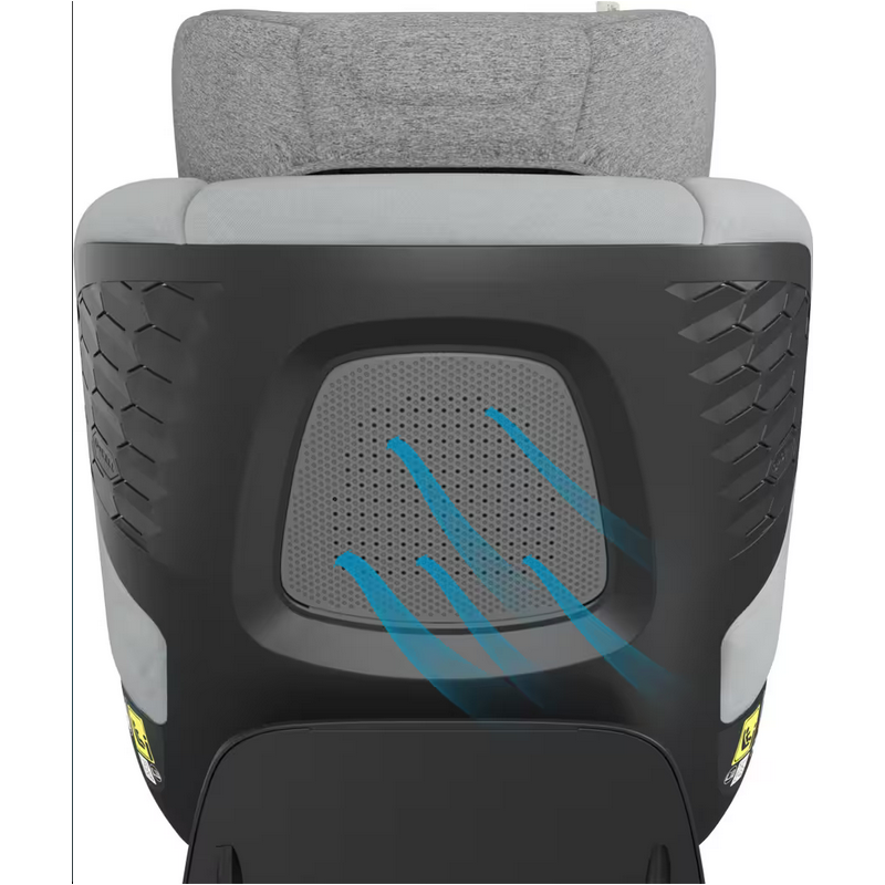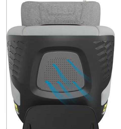W foteliku zastosowano ulepszone i większe panele wentylacyjne ClimaFlow oraz oddychającą piankę, aby poprawić cyrkulację powietrza i zapewnić dziecku właściwą temperaturę.