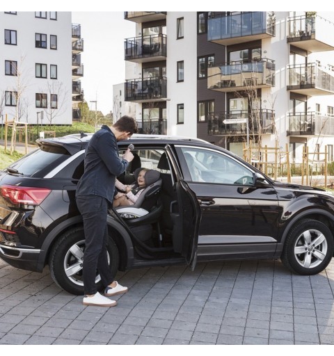 Można go łatwo przenosić między samochodami, dzięki oddzieleniu fotelika od jego bazy