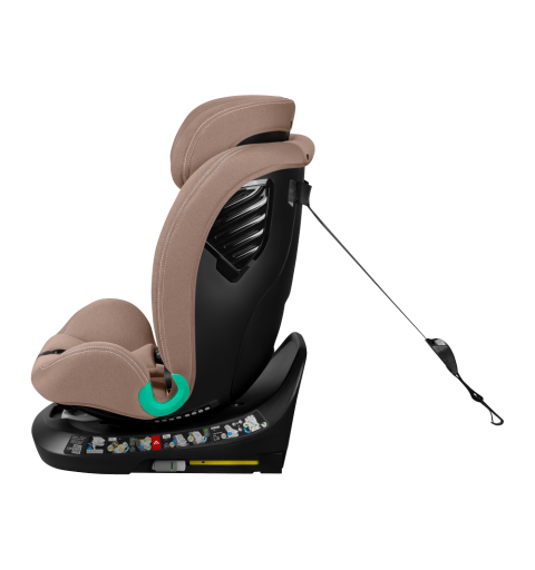 Poręczna baza obrotowa 360 EasyTurn pozwala na dokładne zapięcia dziecka oraz umożliwia szybkie i wygodne wyjęcie maluszka. Rodzic może obrócić bazę w stronę drzwi, co umożliwia łatwy dostęp, bez konieczności nadwyrężania pleców. W zapinaniu maluszka pomaga również mechanizm regulacji wewnętrznych pasów, który pozwala na ich napięcie przez jedno pociągnięcie ręki.