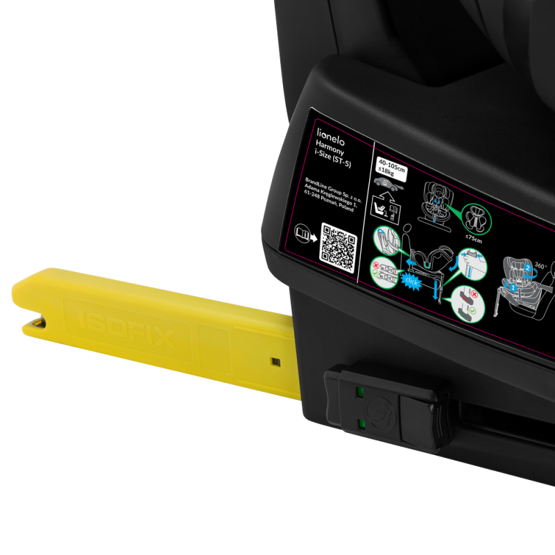 Lionelo Harmony i-Size Beige Sand Bamboo to nowoczesny fotelik samochodowy, który spełnia najwyższe standardy bezpieczeństwa zgodne z homologacją i-Size. Jest przeznaczony dla dzieci z grupy wzrostowej od 40 do 150 cm i posiada możliwość montażu zarówno przodem, jak i tyłem do kierunku jazdy, przy użyciu systemu ISOFIX oraz nogi stabilizującej. Został stworzony z delikatnego i wytrzymałego włókna bambusowego, które gwarantuje doskonałą cyrkulację powietrza. Zastosowana baza obrotowa 360° EasyTurn znacznie ułatwia umieszczanie i wyjmowanie dziecka z fotelika, a 5-stopniowa regulacja pochylenia oparcia - w ustawieniu przodem i tyłem do kierunku jazdy - pozwala na dostosowanie ustawień do preferencji dziecka, zapobiegając również opadaniu główki podczas drzemki. Innowacyjny system Side Impact Guard dzięki zastosowaniu przekładanego crash-pada zapewnia lepszą stabilność fotelika w przypadku zderzenia oraz pełni funkcję strefy pierwszego zgniotu. Natomiast umieszczony w sprzączce Buckle Alarm informuje rodzica o odpięciu pasów przez dziecko. O bezpieczeństwo i komfort dziecka dba również regulowana rama antyrotacyjna, która zapewnia jeszcze lepsze dopasowanie do kanapy samochodu.