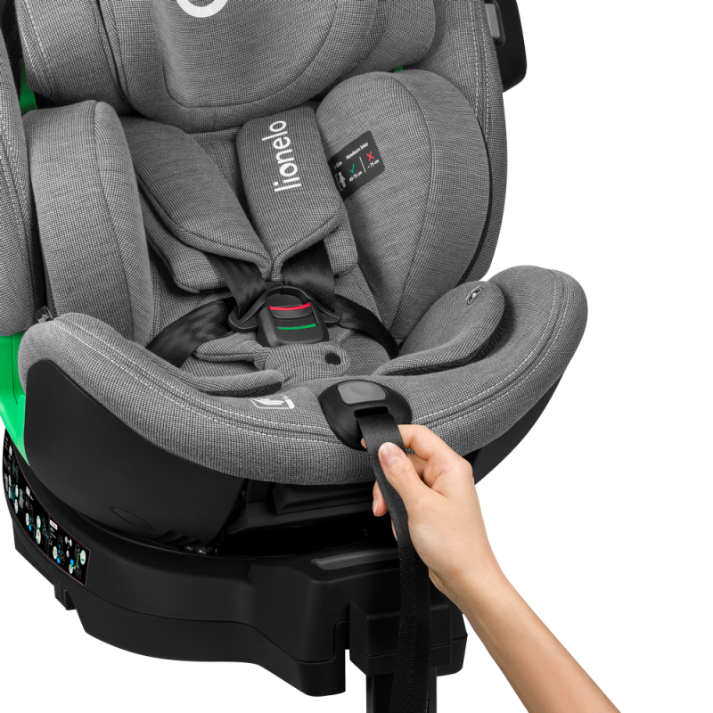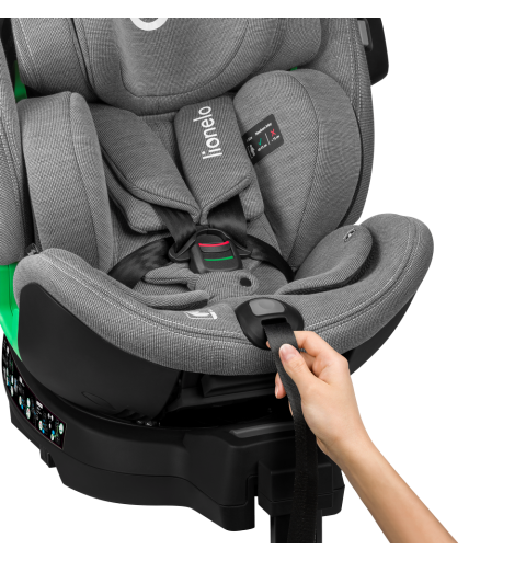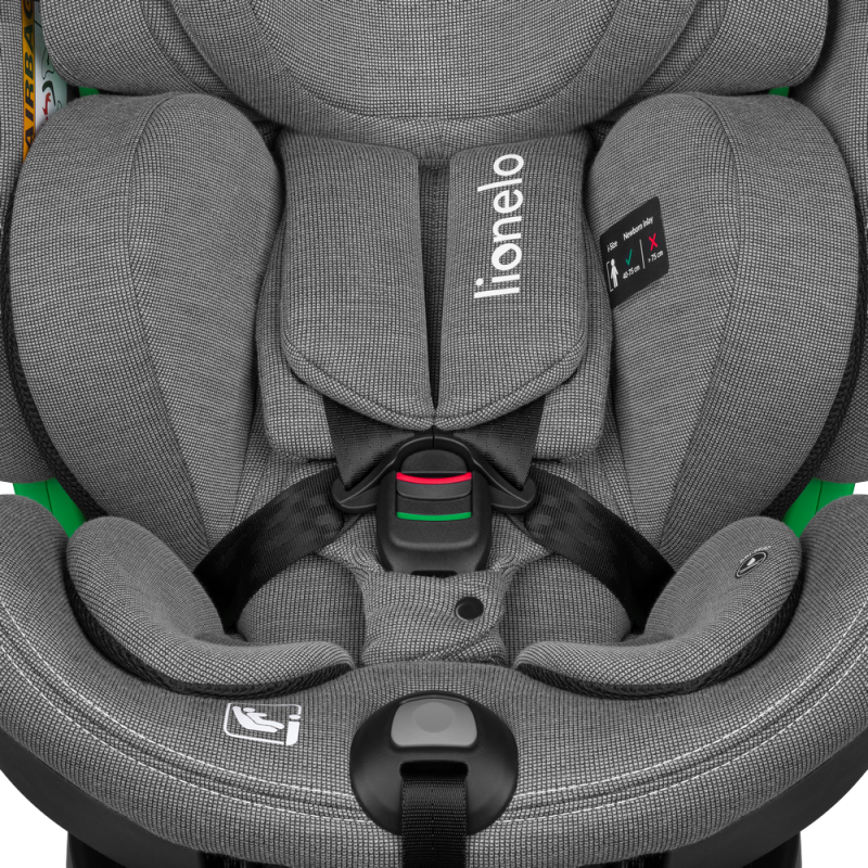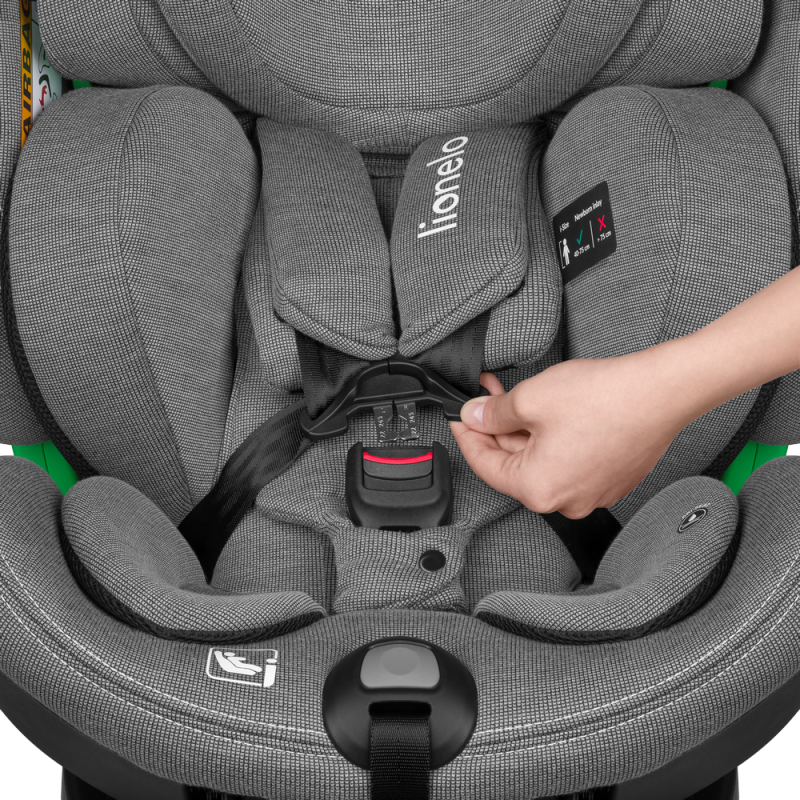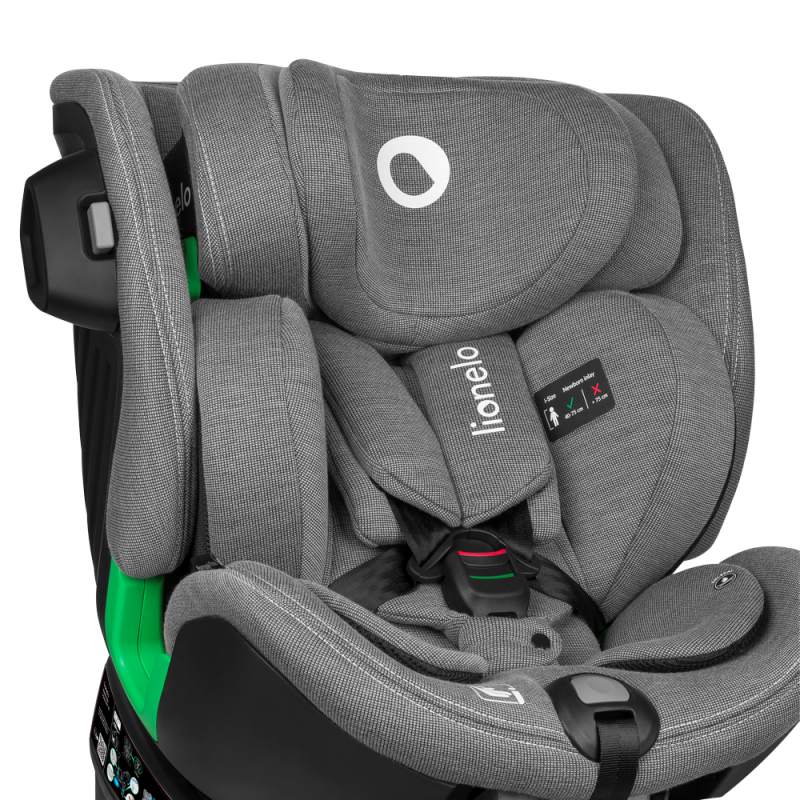 Lionelo Harmony i-Size Beige Sand Bamboo to nowoczesny fotelik samochodowy, który spełnia najwyższe standardy bezpieczeństwa zgodne z homologacją i-Size. Jest przeznaczony dla dzieci z grupy wzrostowej od 40 do 150 cm i posiada możliwość montażu zarówno przodem, jak i tyłem do kierunku jazdy, przy użyciu systemu ISOFIX oraz nogi stabilizującej. Został stworzony z delikatnego i wytrzymałego włókna bambusowego, które gwarantuje doskonałą cyrkulację powietrza. Zastosowana baza obrotowa 360° EasyTurn znacznie ułatwia umieszczanie i wyjmowanie dziecka z fotelika, a 5-stopniowa regulacja pochylenia oparcia - w ustawieniu przodem i tyłem do kierunku jazdy - pozwala na dostosowanie ustawień do preferencji dziecka, zapobiegając również opadaniu główki podczas drzemki. Innowacyjny system Side Impact Guard dzięki zastosowaniu przekładanego crash-pada zapewnia lepszą stabilność fotelika w przypadku zderzenia oraz pełni funkcję strefy pierwszego zgniotu. Natomiast umieszczony w sprzączce Buckle Alarm informuje rodzica o odpięciu pasów przez dziecko. O bezpieczeństwo i komfort dziecka dba również regulowana rama antyrotacyjna, która zapewnia jeszcze lepsze dopasowanie do kanapy samochodu.