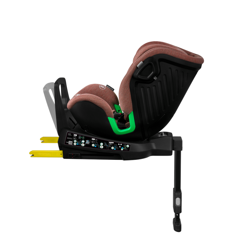 Baza obrotowa znacząco ułatwia odkładanie i wyjmowanie dziecka z fotelika, zwiększając komfort