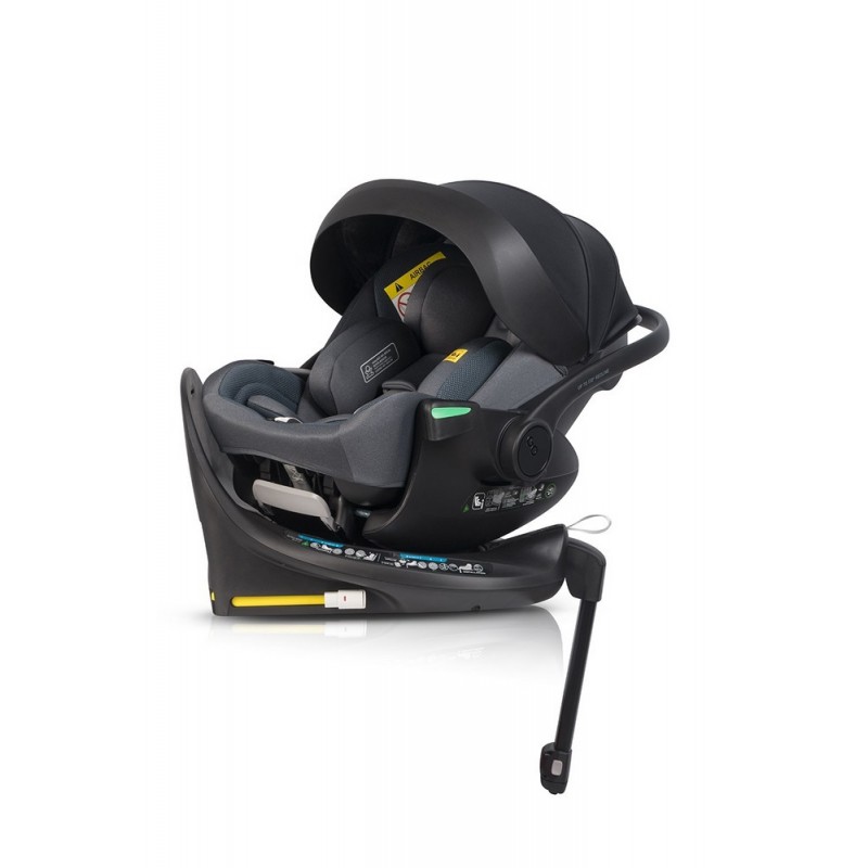 Oznacza to, że nie trzeba go wypinać z bazy, aby obrócić go przodem lub tyłem do kierunku jazdy. Fotelik można również ustawić bokiem, co okaże się niezwykle praktyczną funkcją przy usadzaniu dziecka lub podczas postoju na przykład na czas karmienia.