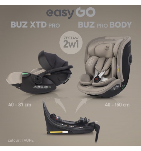 EasyGo Buz XTD Pro, Buz Pro Body - zestaw 2w1 fotelików samochodowych z bazą 0-36 kg | Taupe