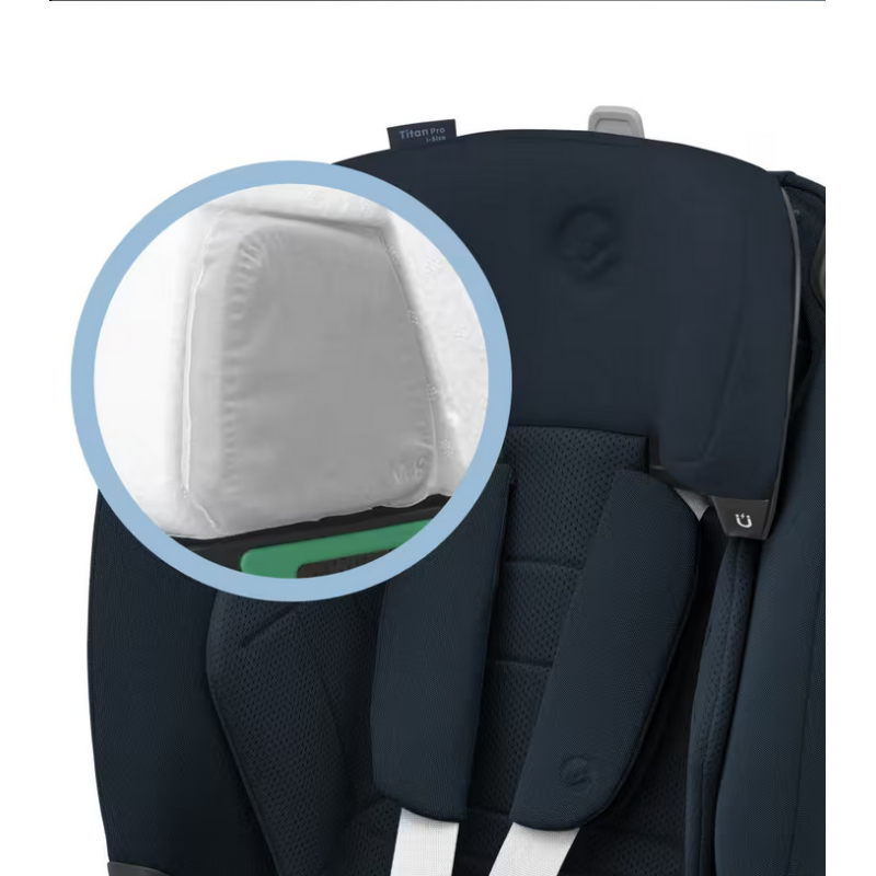 Opatentowana technologia ochrony bocznej AirProtect® w zagłówku fotelika Titan Pro i-Size zmniejsza ryzyko urazu głowy nawet o 20%.