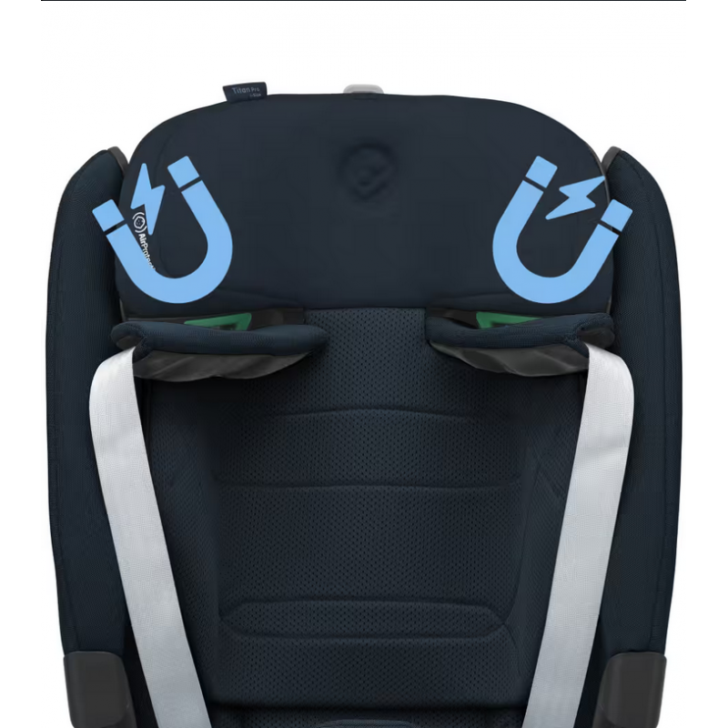 W ochraniaczach pasów 5-punktowej uprzęży fotelika zostały ukryte magiczne magnesy, dzięki którym szelki nie przeszkadzają, a Ty możesz bez problemu umieścić dziecko w samochodzie.