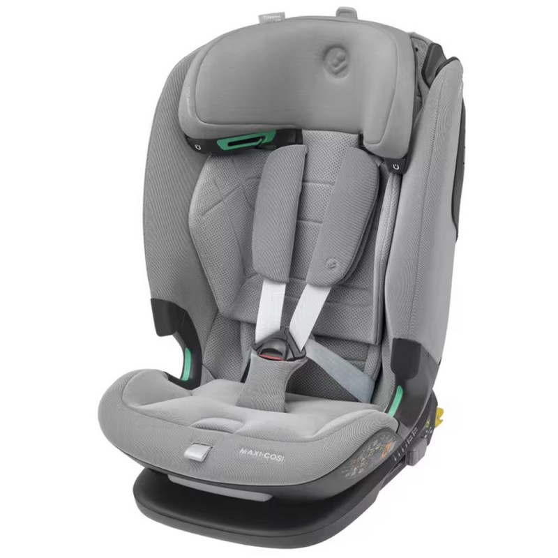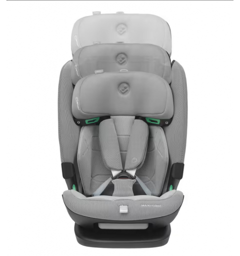 Od żłobka do szkoły — fotelik Titan Pro i-Size z siedziskiem skierowanym przodem do kierunku jazdy dostosowuje się do potrzeb rosnącego malucha i może mu służyć od 15 miesiąca do 12 roku życia. Gdy dziecko jest jeszcze małe, możesz używać uprzęży z magnetyczną klamrą, aby zapewnić mu bezpieczeństwo przez cały czas (uprząż może być używana do 4 roku życia/105 cm). Gdy dziecko osiągnie już wiek, w którym będzie mogło korzystać z samochodowych pasów bezpieczeństwa, uprząż z łatwością schowasz w oparciu. Fotelik samochodowy z systemem ISOFIX dla dzieci z grup wiekowych 1-2-3 został wyposażony w wyściełany zagłówek, który można ustawić w 11 różnych pozycjach. Superwygodne siedzisko z dodatkową wyściółką przekształca się w fotelik z wysokim oparciem, zapewniając Twojemu maluchowi bezpieczeństwo, ochronę i komfort podczas podróży.