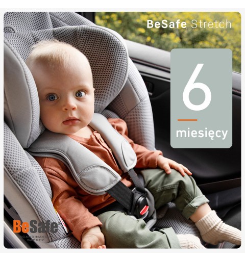 Fotelik BeSafe Stretch można użytkować już od 61 cm wzrostu (ok. 6 miesiąca życia) do 125 cm.