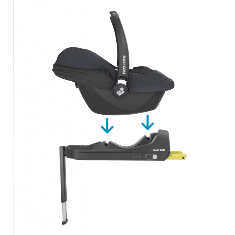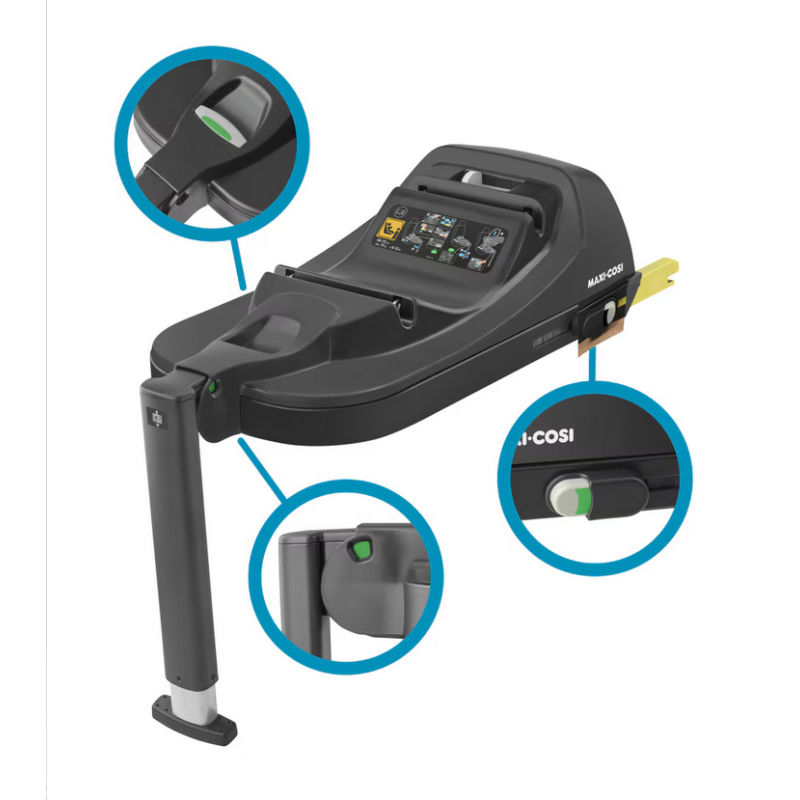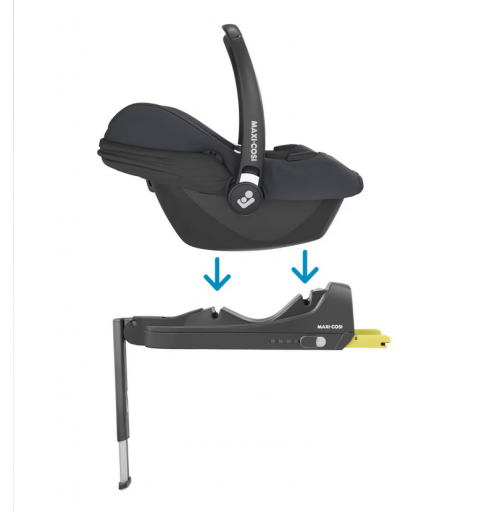 Do fotelika Maxi-Cosi CabrioFix i-Size idealnie pasuje baza Maxi-Cosi CabrioFix i-Size, która umożliwia montaż zatrzaskowy, zapewniając wygodę użytkowania. Baza Maxi-Cosi CabrioFix i-Size pasuje do systemu ISOFIX. Należy postępować zgodnie z krokami opisanymi w instrukcji obsługi, aby upewnić się, że została prawidłowo zamontowana w samochodzie. Po zamontowaniu można pozostawić bazę CabrioFix i-Size w samochodzie. W ten sposób za każdym razem, gdy podróżujesz samochodem, fotelik dla niemowląt CabrioFix i-Size wystarczy po prostu umieścić w bazie, a „kliknięcie” poinformuje o bezpiecznym wpięciu. Do weryfikacji, czy baza CabrioFix i-Size i fotelik CabrioFix i-Size są poprawnie zamontowane i gotowe do jazdy, służą też wskaźniki wizualne.