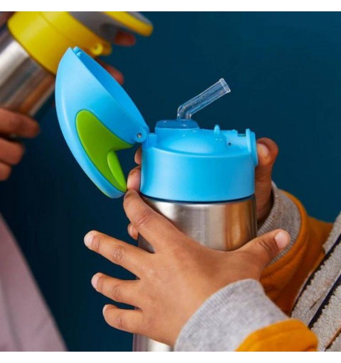 Termobutelka ze słomką marki b.box przyda się Twojemu dziecku przez cały rok. Dzięki podwójnym ściankom ze stali nierdzewnej utrzymuje temperaturę ciepłych napojów do 8 godzin a zimnych do 15 h*. Wykonana z wysokiej jakości stali nierdzewnej jest trwała i bezpieczna. Dno wykończone silikonową kolorową osłonką nie ślizga się, stal się nie obija i nie rysuje. Szczelna pokrywka z łatwym systemem otwierania z przyciskiem, posiada zintegrowany uchwyt ułatwiający przenoszenie. Maluch bez problemu poradzi sobie z jej otworzeniem i zamknięciem. Elastyczna delikatna słomka łatwo chowa się pod pokrywką.