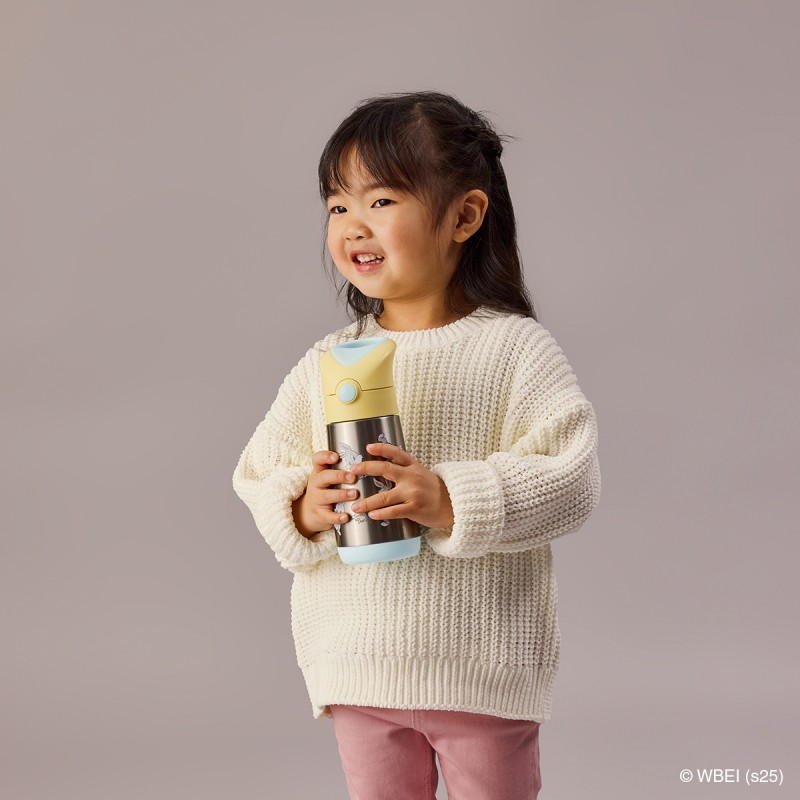 Termobutelka ze słomką marki b.box przyda się Twojemu dziecku przez cały rok. Dzięki podwójnym ściankom ze stali nierdzewnej utrzymuje temperaturę ciepłych napojów do 6 godzin a zimnych do 8 h. Wykonana z wysokiej jakości stali nierdzewnej jest trwała i bezpieczna. Dno wykończone silikonową kolorową osłonką nie ślizga się, stal się nie obija i nie rysuje. Szczelna pokrywka z łatwym systemem otwierania z przyciskiem, posiada zintegrowany uchwyt ułatwiający przenoszenie. Maluch bez problemu poradzi sobie z jej otworzeniem i zamknięciem. Elastyczna delikatna słomka łatwo chowa się pod pokrywką.