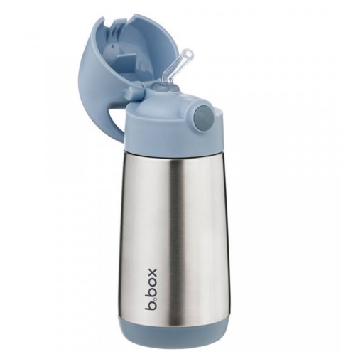 Termobutelka ze słomką marki b.box przyda się Twojemu dziecku przez cały rok. Dzięki podwójnym ściankom ze stali nierdzewnej utrzymuje temperaturę ciepłych napojów do 6 godzin a zimnych do 8 h. Wykonana z wysokiej jakości stali nierdzewnej jest trwała i bezpieczna. Dno wykończone silikonową kolorową osłonką nie ślizga się, stal się nie obija i nie rysuje. Szczelna pokrywka z łatwym systemem otwierania z przyciskiem, posiada zintegrowany uchwyt ułatwiający przenoszenie. Maluch bez problemu poradzi sobie z jej otworzeniem i zamknięciem. Elastyczna delikatna słomka łatwo chowa się pod pokrywką.