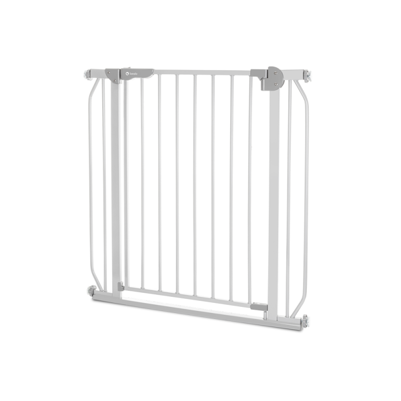 - Podwójne zabezpieczenie: Produkt wyposażony jest w podwójne zabezpieczenie zapobiegające niekontrolowanemu otwarciu bramki przez dziecko.