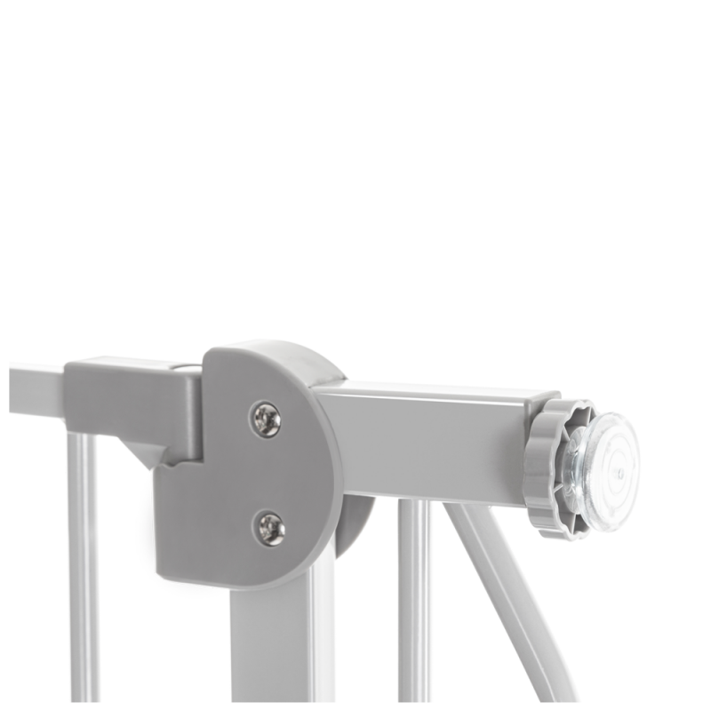 Rozporowy montaż bramki Truus Slim jest wygodny i w pełni bezpieczny. Produkt posiada szeroki zakres wymiarowy od 75. do 85. centymetrów, co pozwala na łatwiejsze jego dostosowanie do wymagań różnych przejść. Po dołożeniu rozszerzeń może również stanowić efektywne zabezpieczenie schodów, a szerokość produktu zwiększa się wówczas do 105. centymetrów.