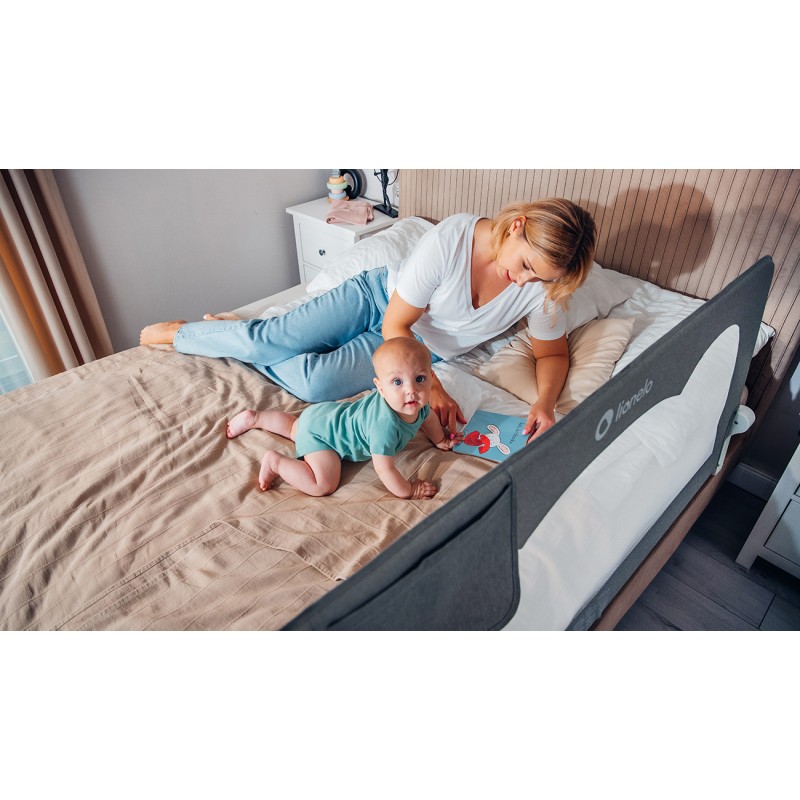 Bezpieczny sen malucha w Waszym łóżku? To możliwe z barierką Lionelo Hanna! Jest łatwa w montażu, a wysokość 66 cm i stabilność są gwarancją dobrej ochrony przed upadkiem. To doskonała alternatywa dla klasycznego łóżeczka dziecięcego, którą możesz zabrać ze sobą wszędzie!