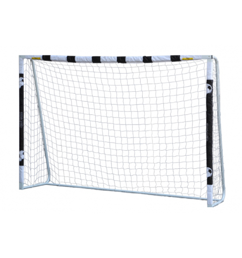 32 mm i grubości ścianki 0.8 mm, oraz cieńszych o średnicy 28 mm i grubości ścianki 0,8 mm. Montaż zestawu jest bardzo prosty i zamyka się w czterech krokach. Elementy łączą się stabilnie, tworząc charakterystyczny kształt piłkarskiej bramki. Do zestawu dołączone zostały również haczyki umożliwiające przymocowanie bramki do podłoża. W zestawie znajduje się siatka.