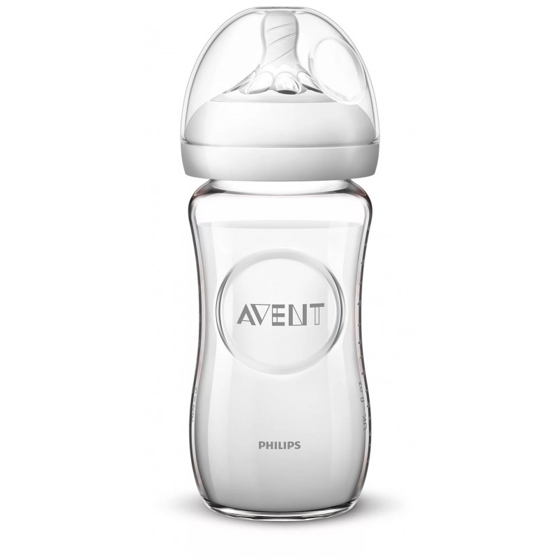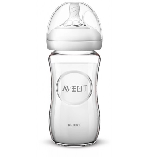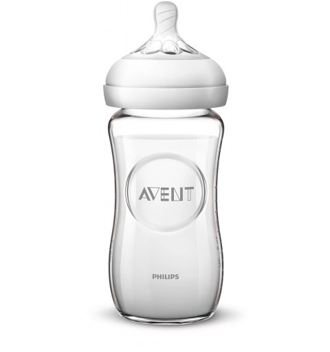 Avent Natural 2 - szklana butelka antykolkowa 240ml z smoczkiem 1+ | SCF053/17