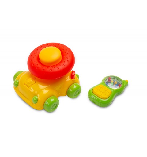 Maluszki ucieszy również moc atrakcji, jakich dostarcza edukacyjny panel. Dźwięki i światełka angażują uwagę i rozwijają zmysły. Mini kierownica, klakson i inne akcesoria to skuteczny lek na nudę.