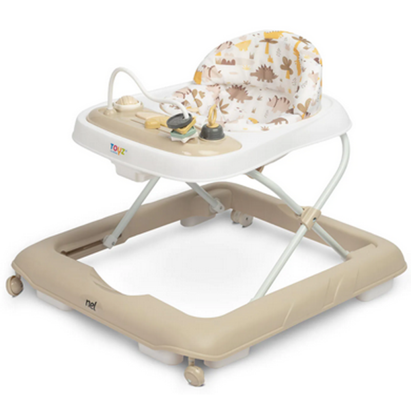 Nel to przystępny cenowo i stylowy chodzik dla maluchów marki Toyz. Wyróżnia go elegancka kolorystyka i wygoda użytkowania. Specjalna konstrukcja umożliwia dopasowanie położenia siedziska do wysokości malucha – tak, by stópki swobodnie dotykały podłoża. Wyposażony jest w dźwiękowy panel zasilany bateriami i manualne zabawki, które zapewniają dobrą zabawę.