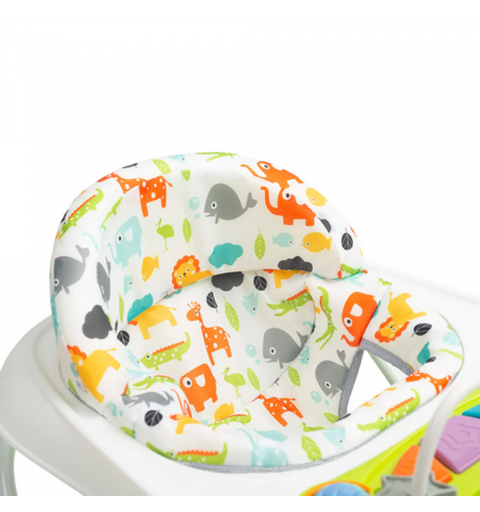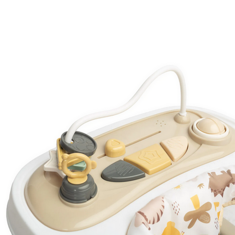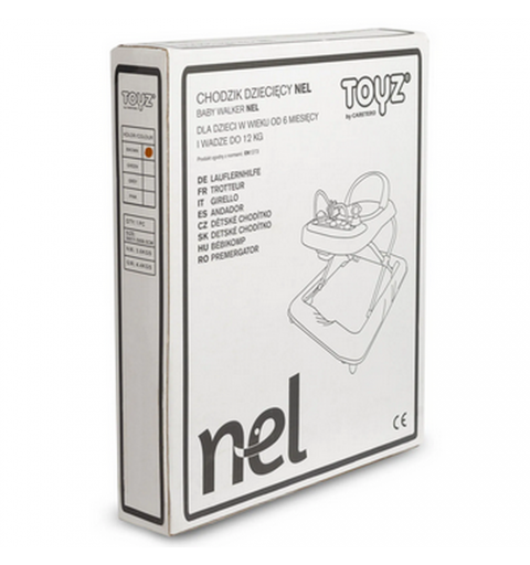 Nel to przystępny cenowo i stylowy chodzik dla maluchów marki Toyz. Wyróżnia go elegancka kolorystyka i wygoda użytkowania. Specjalna konstrukcja umożliwia dopasowanie położenia siedziska do wysokości malucha – tak, by stópki swobodnie dotykały podłoża. Wyposażony jest w dźwiękowy panel zasilany bateriami i manualne zabawki, które zapewniają dobrą zabawę.