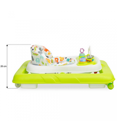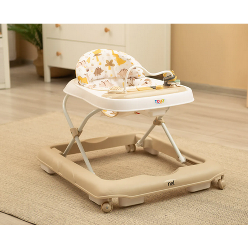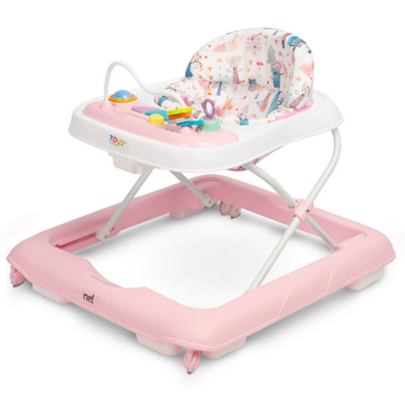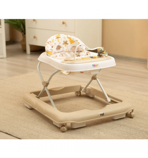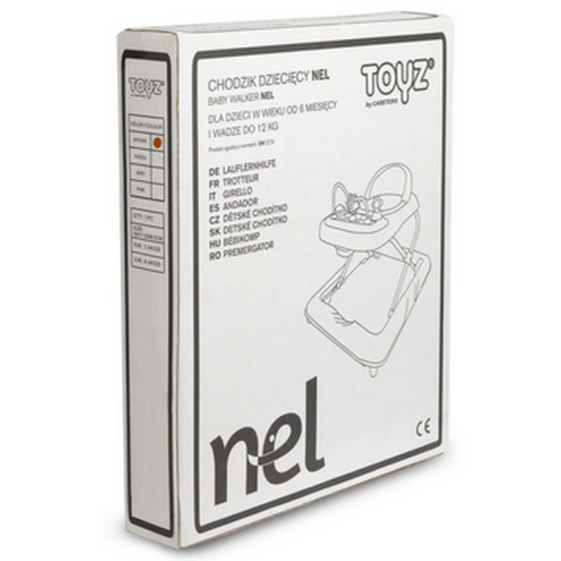 Nel to przystępny cenowo i stylowy chodzik dla maluchów marki Toyz. Wyróżnia go elegancka kolorystyka i wygoda użytkowania. Specjalna konstrukcja umożliwia dopasowanie położenia siedziska do wysokości malucha – tak, by stópki swobodnie dotykały podłoża. Wyposażony jest w dźwiękowy panel zasilany bateriami i manualne zabawki, które zapewniają dobrą zabawę.