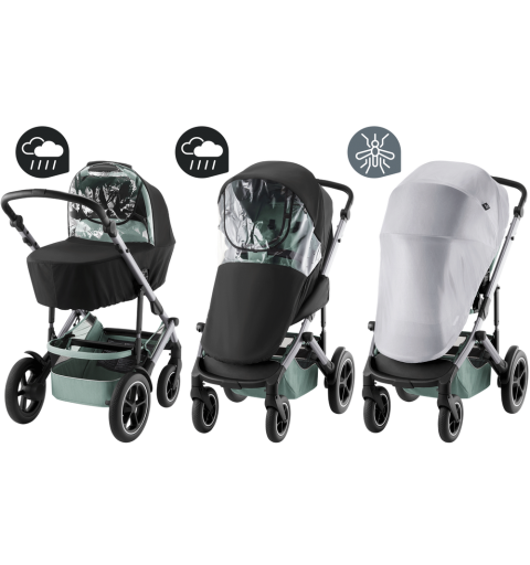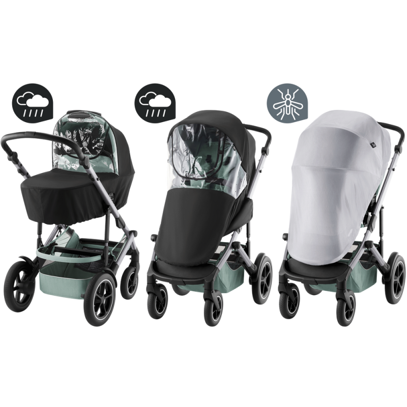 Zestaw pogodowy pozwala chronić Twoje dziecko w każdych warunkach. Zestaw zawiera osłonę przeciwdeszczową na wózek SMILE oraz osłonę na gondolę SMILE. Dzięki temu Twój maluch jest zawsze chroniony przed wiatrem i deszczem, bez względu na to czy podróżuje w wózku spacerowym czy w gondoli. W zestawie znajduje się też moskitiera, która pasuje zarówno do wózka spacerowego, jak i gondoli, zapewniając ochronę Twojemu dziecku przed latającymi owadami.