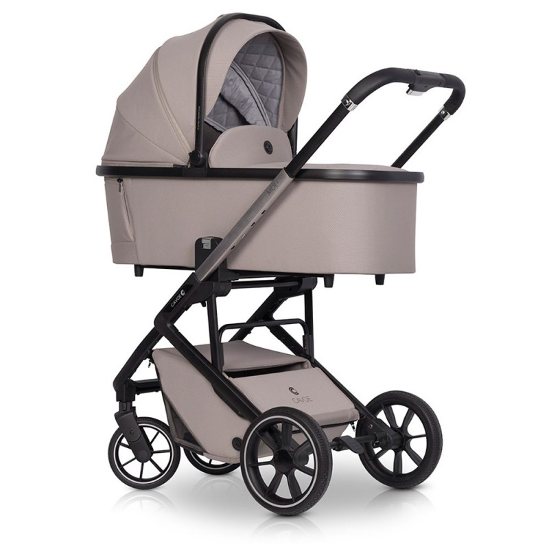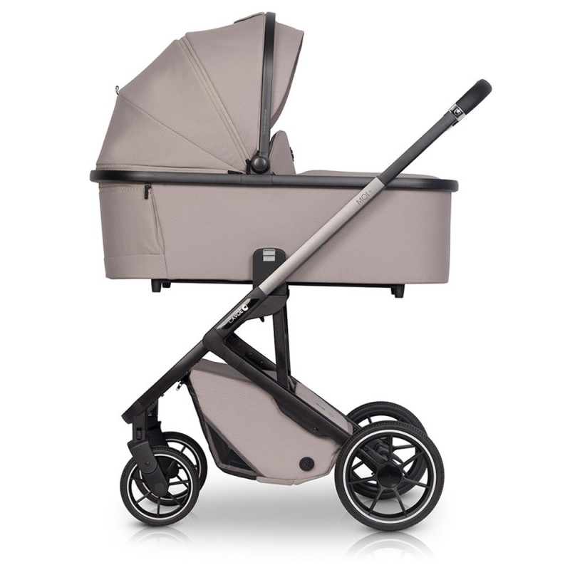 Gondola wózka MOI+ jest duża i wygodna. Jej wewnętrzna długość to 78 cm, więc z pewnością wystarczy do czasu jak dziecko przesiądzie się do siedziska. Gondola jest bardzo lekka i zgrabna. Można ją złożyć na płasko na czas transportu lub przechowywania.