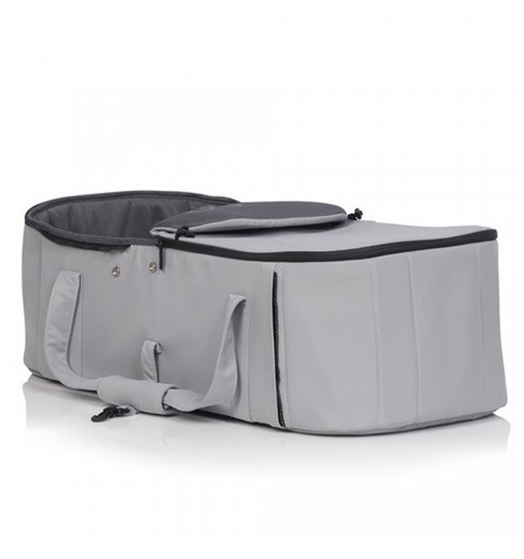 Miękka gondola ECHO posiada dopinaną budkę przeciwsłoneczną. Górna pokrywa może być całkowicie zdemontowana co przyda się w ciepłe dni. Wnętrze wykonane zostało z miękkiej bawełny w jasno szarym kolorze. Gondola posiada również pasy do przenoszenia.