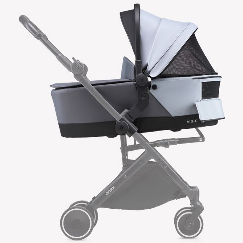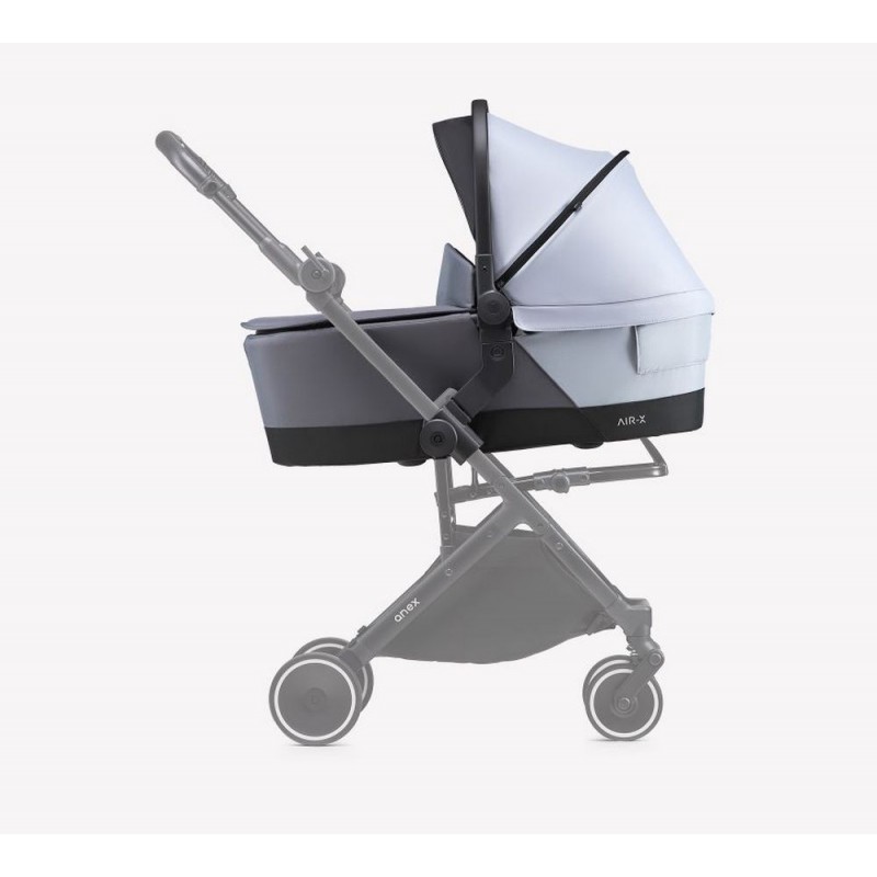 - Możesz zamontować gondolę na ramie wózka Anex Air-X, zapewniając w ten sposób wygodną i lekką podróż z dzieckiem.