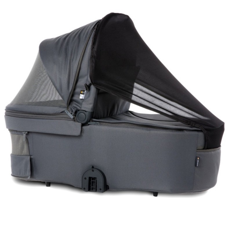 Gondola M6x zawiera bardzo wygodny i oddychający materac. Jest dobrze wentylowana, aby zapewnić optymalną cyrkulację powietrza, co gwarantuje spokojny i bezpieczny sen. Możesz otworzyć wentylację pod spodem, na budce lub na główce gondoli, w zależności od potrzeb. Zintegrowana siatka UV zapewnia dodatkową ochronę przed szkodliwymi promieniami słonecznymi. Gondola może być łatwo przymocowana do ramy wózka za pomocą wbudowanych adapterów i ponownie zdemontowana za pomocą przycisków pamięci.