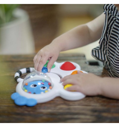 • Rozwija zdolności motoryczne, kreatywność oraz umiejętność badania przyczyn i skutków podczas zabawy na podłodze lub w podróży.
