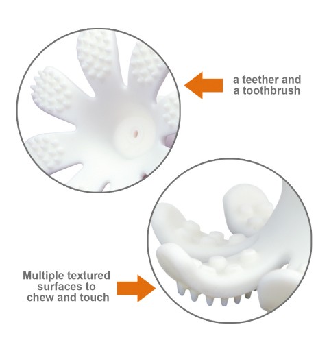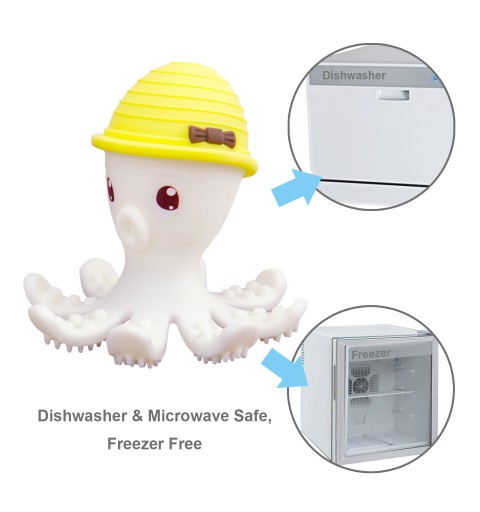 Silikonowy gryzak dla dziecka wykonany w wersji 3D. To idealny pierwszy gryzak dla niemowlaka, ponieważ został zaprojektowany w taki sposób, aby Twoje Maleństwo nie mogło się zadławić. Uroczy gryzak dla dziecka w postaci ośmiorniczki stanie się ulubionym przyjacielem w czasie ząbkowania. Jej konstrukcja zapewnia dziecku wiele sposobów na zabawę. Gładka powierzchnia może posłużyć do ssania, można zrobić z niej kulkę. Osiem macek, w które został wyposażony gryzak dla dziecka posiada wypustki służące zarówno jako gryzak oraz szczoteczka do zębów. Odpowiedni kształt i rozmiar umożliwiają dziecku łatwe jej chwytanie. Gryzak dla niemowlaka można używać w zmywarce, mikrofalówce, a także zamrażarce. Ośmiorniczka zapakowana w przeźroczyste, sztywne opakowanie, będzie idealnym prezentem.