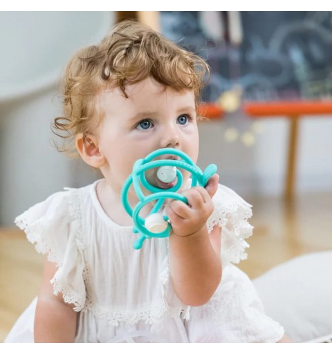 Silikonowy gryzak dla niemowlaka w kształcie ślimaka został zaprojektowany z myślą o najmłodszych dzieciach. Produkt pełni nie tylko rolę gryzaka dla dzieci, ale również jest grzechotką. Po bokach ślimaka znajdują się grzechocące kółeczka, które z powodzeniem angażują Maluszka do zabawy. Miękki gryzak dla niemowlaka z grzechotką, idealnie dopasuje się do małych rączek. Dodatkowo pozwala maluchowi ćwiczyć odruch chwytania, rozwijając przy tym zdolności motoryczne dziecka. Czułki Ślimaka mają kształt smoczka, który delikatnie masuje dziąsełka malucha i łagodzi ból podczas ząbkowania. Gryzak dla niemowlaka jest bezpieczny i łatwy w gryzieniu nawet po ochłodzeniu. Kształt Ślimaka i jego kolorystyka zachęcą Malucha do zabawy. Gryzak dla dziecka można używać w zmywarce, mikrofalówce, a także zamrażarce.
