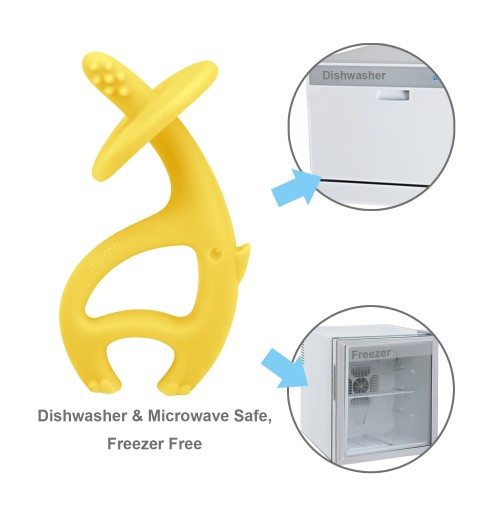 Miękki gryzak dla dzieci tańczący słonik został zaprojektowany z myślą o bezpieczeństwie najmłodszych dzieci. Gryzak silikonowy dla dzieci zakończony jest wypustkami masującymi delikatne dziąsełka. W efekcie łagodzi ból i swędzenie podczas ząbkowania. Gryzak dla dzieci Dancing Elephant posiada odpowiedni kształt i rozmiar dopasowany do maleńkich rączek. Silikonowy gryzak posłuży maluszkowi również jako szczoteczka do zębów. Nasze produkty spełniają restrykcyjne międzynarodowe normy, dlatego też nie ma możliwości zadławienia się przez maluszka. Kształt gryzaka i jego kolorystyka zachęcą maluszka do zabawy, w wyniku czego zapomni o dyskomforcie związanym z ząbkowaniem. Można używać go w zmywarce, mikrofalówce, a także zamrażarce.