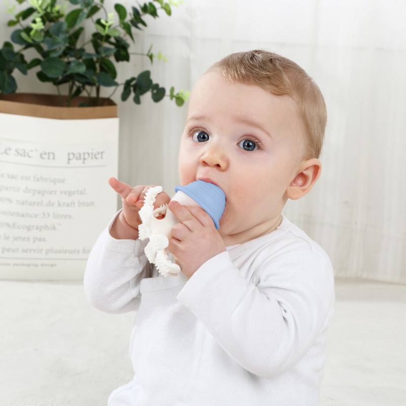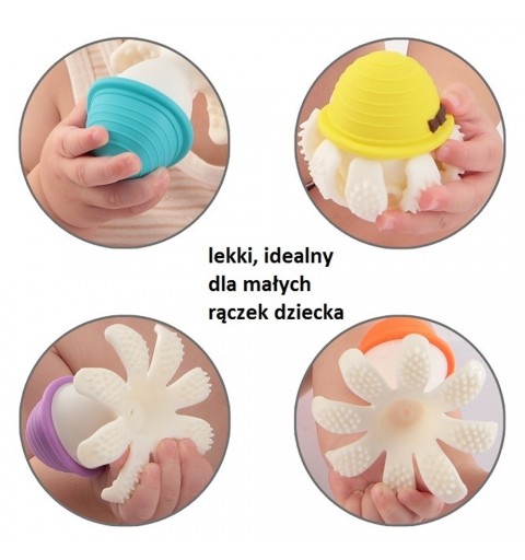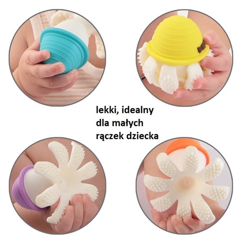 Silikonowy gryzak dla dziecka wykonany w wersji 3D. To idealny pierwszy gryzak dla niemowlaka, ponieważ został zaprojektowany w taki sposób, aby Twoje Maleństwo nie mogło się zadławić. Uroczy gryzak dla dziecka w postaci ośmiorniczki stanie się ulubionym przyjacielem w czasie ząbkowania. Jej konstrukcja zapewnia dziecku wiele sposobów na zabawę. Gładka powierzchnia może posłużyć do ssania, można zrobić z niej kulkę. Osiem macek, w które został wyposażony gryzak dla dziecka posiada wypustki służące zarówno jako gryzak oraz szczoteczka do zębów. Odpowiedni kształt i rozmiar umożliwiają dziecku łatwe jej chwytanie. Gryzak dla niemowlaka można używać w zmywarce, mikrofalówce, a także zamrażarce. Ośmiorniczka zapakowana w przeźroczyste, sztywne opakowanie, będzie idealnym prezentem.