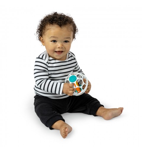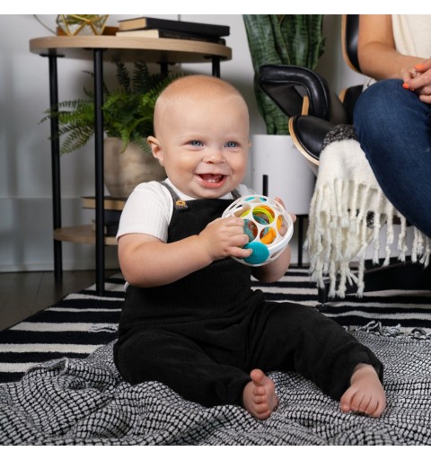- elastyczna, wolna od BPA piłka, która pomaga niemowlętom budować umiejętności motoryczne oraz uczyć się przyczynowo-skutkowych podczas chwytania, potrząsania lub toczenia zabawki