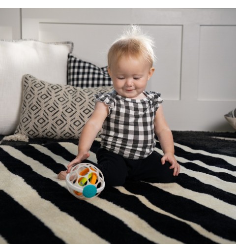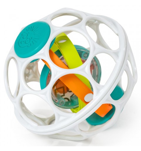 Łatwa do uchwycenia piłka posiada lusterko , w środku którego znajdują się koraliki dające efekt grzechotki oraz kolorowe pętle wewnętrz piłki, które obracają się po potrząśnięciu, Wszytskie te elementy zachwycają Twoje dziecko, zarówno w domu , jak i w podróży. Niemowlęta i małe dzieci uwielbiają ściskać ,chwytać , potrząsać i toczyć elastyczną piłkę Oball , po to aby usłyszeć odgłosy grzechotki. Pozwól dziecku złapać spojrzenie na ich słodkie odbicie w bezpiecznym dla dziecka lusterku! Zabawka Grip & Spin Oball Rattle Toy to świetny prezent dla Twojego dziecka. Przeznaczona dla dzieci 0 m+ i więcej. Idealna zabawka odczas leżenia na brzuszku, jak i na siedząco . Łatwa w utzymaniu czystości. Wystarczy przetrzeć chusteczkami . Zabawka wolna od BPA .