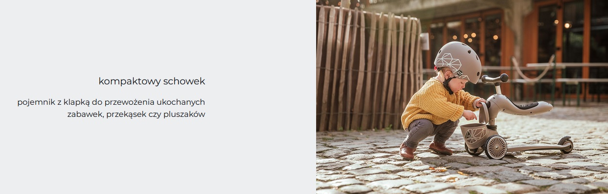 Highwaykick 1 Lifestyle to wyróżniająca się oryginalnym designem, innowacyjna hulajnoga i jeździk 2w1 z siedziskiem i zamykanym schowkiem. To idealne rozwiązanie dla dzieci w wieku od 1 roku życia do 5 lat, które w dodatku „rośnie” razem z nimi! Highwaykick 1 to pierwszy na świecie jeździk i hulajnoga 2w1, które można modyfikować bez użycia narzędzi. Posiada regulowaną wysokość siedziska, a jego najniższa pozycja dostosowana jest do wzrostu stawiających pierwsze kroki maluszków i znajduje się na wysokości 22,5 cm. Za pomocą jednego guzika, w kilka sekund, można zamienić pojazd w hulajnogę na 3 kołach. Highwaykick 1 w wersji Lifestyle jest dodatkowo wyposażona w wyjątkowy, zamykany pojemnik do przewożenia wszystkich dziecięcych skarbów. Scoot & Ride Highwaykick 1 Lifestyle stanie się towarzyszem zabaw Twojego dziecka na wiele lat.