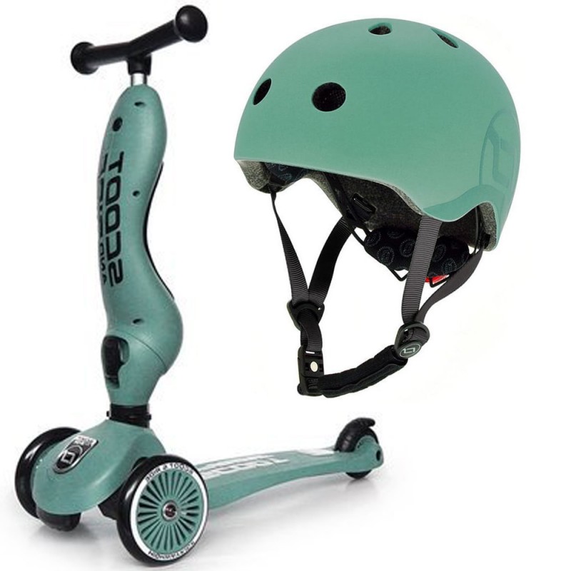 Scoot and Ride Highwaykick 1 - 2w1 Jeździk / Hulajnoga 1-5 Lat zestaw z kaskiem S-M | Forest