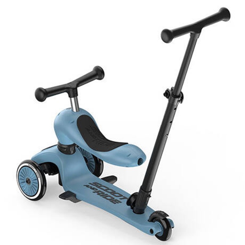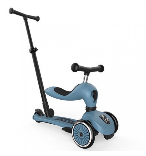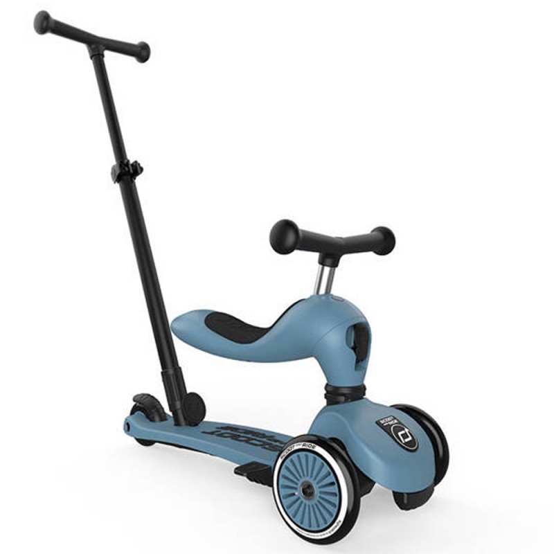 Highwaykick 1 to innowacyjna hulajnoga z siedziskiem. Idealny towarzysz dla dzieci w wieku od 1 roku życia do 5 lat. To pierwszy na świecie jeździk i hulajnoga 2w1, które można modyfikować bez użycia narzędzi. Posiada regulowaną wysokość siedziska, a jego najniższa pozycja dostosowana jest do wzrostu stawiających pierwsze kroki maluszków i znajduje się na wysokości 22,5 cm. Za pomocą jednego guzika, w kilka sekund, można zamienić pojazd w hulajnogę na 3 kołach. Highwaykick 1 jest niezwykle stabilna, wygodna i bezpieczna nawet dla najmłodszych dzieci. Hulajnoga wyposażona została w opatentowany, rewolucyjny system safety-pad, która zapobiega m. in. przewróceniu się na nierównym terenie czy utknięciu kół. Scoot & Ride Highwaykick 1 stanie się towarzyszem zabaw Twojego dziecka na wiele lat.