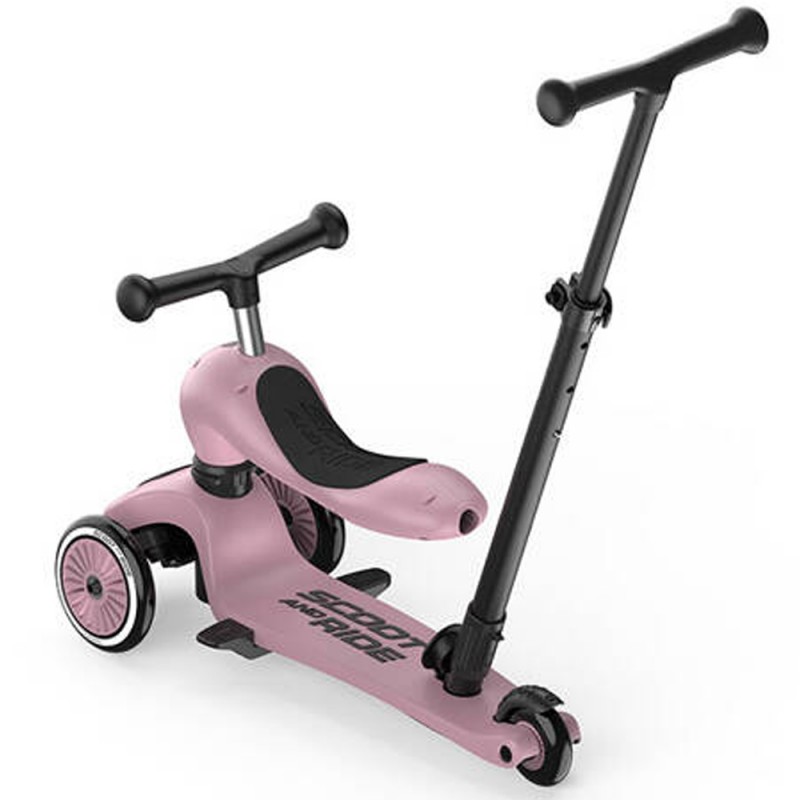 Highwaykick 1 to innowacyjna hulajnoga z siedziskiem. Idealny towarzysz dla dzieci w wieku od 1 roku życia do 5 lat. To pierwszy na świecie jeździk i hulajnoga 2w1, które można modyfikować bez użycia narzędzi. Posiada regulowaną wysokość siedziska, a jego najniższa pozycja dostosowana jest do wzrostu stawiających pierwsze kroki maluszków i znajduje się na wysokości 22,5 cm. Za pomocą jednego guzika, w kilka sekund, można zamienić pojazd w hulajnogę na 3 kołach. Highwaykick 1 jest niezwykle stabilna, wygodna i bezpieczna nawet dla najmłodszych dzieci. Hulajnoga wyposażona została w opatentowany, rewolucyjny system safety-pad, która zapobiega m. in. przewróceniu się na nierównym terenie czy utknięciu kół. Scoot & Ride Highwaykick 1 stanie się towarzyszem zabaw Twojego dziecka na wiele lat.