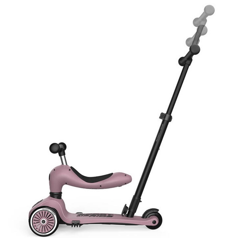 Highwaykick 1 Push and Go wyposażona jest w regulowany (3 wysokości) kijek do pchania, dzięki któremu rodzic może wygodnie sterować pojazdem zarówno podczas korzystania z funkcji jeździka, jak i hulajnogi. Drążek, kiedy nie jest już potrzebny, można całkowicie zdemontować 1 kliknięciem, bez użycia narzędzi. Wygodne podnóżki są również łatwe do zdjęcia czy zamocowania.