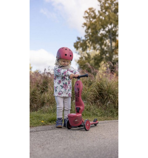 Ultralekkie kaski Scoot & Ride zapewniają doskonałe bezpieczeństwo nawet najmłodszym dzieciom. Kaski są dostępne w 2 rozmiarach i wielu kolorach, idealnie pasujących do koloru ulubionej hulajnogi. Innowacyjne zapięcie magnetyczne ułatwia dzieciom otwieranie i zamykanie kasku oraz zapobiega przyszczypnięciu skóry. Wszystkie kaski mają regulowany rozmiar i wyjmowaną, nadającą się do prania wyściółkę wewnętrzną.